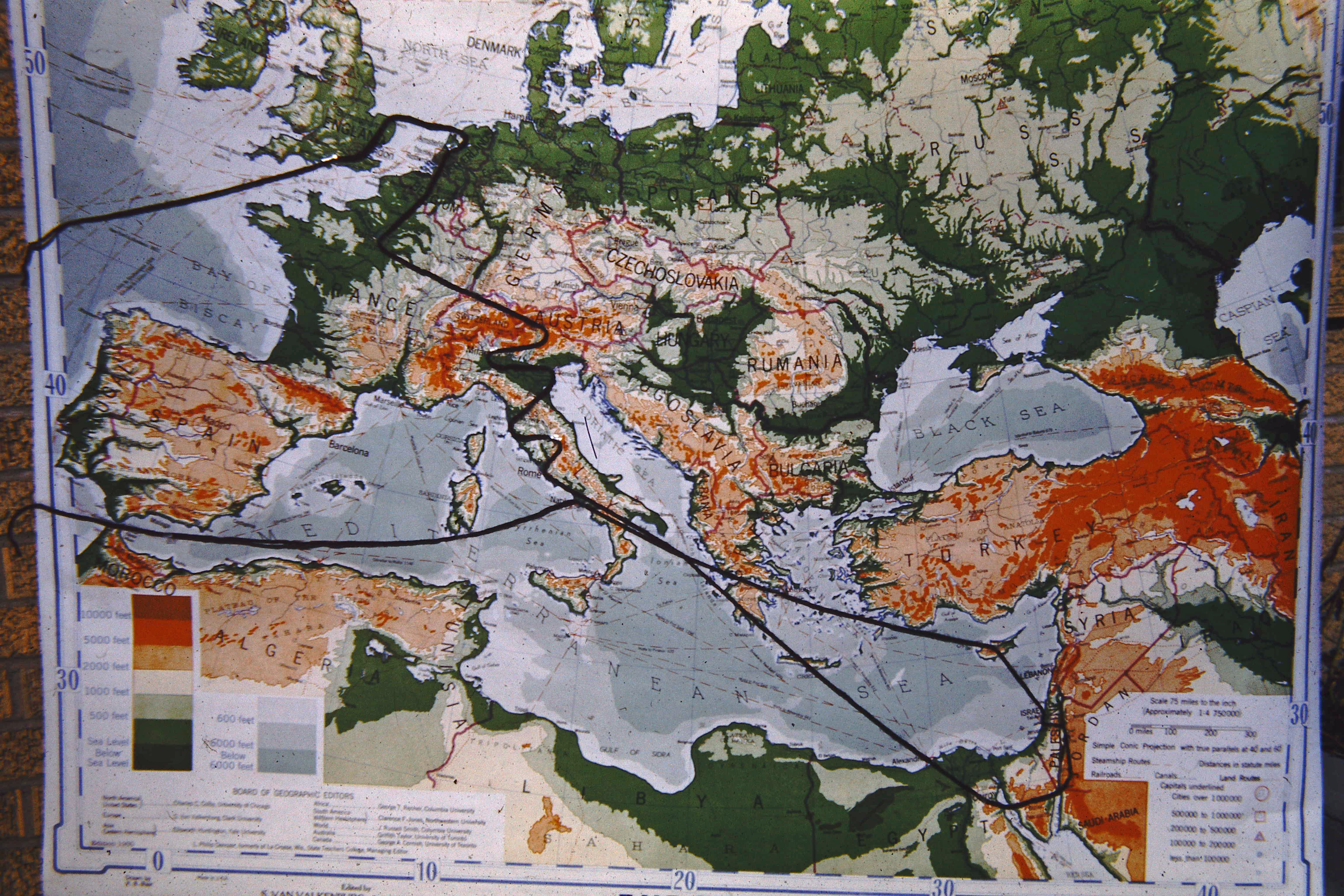 Map of Travels in Europe & Middle East