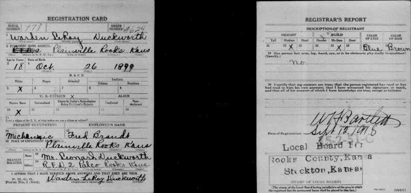 Leroy DUCKWORTH was born on 26 Oct 1899 in Rooks County,