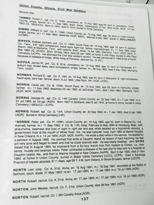 in Union County, IL. He lived one mile north of Alto Pass, IL at
