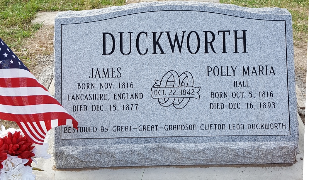 Julia Ann DUCKWORTH Click on her name for more information. Lucian DUCKWORTH was born on 6 Feb 1856 in Illinois. He died on 13 Jan 1858 in Randolph County, IL. Nothing more is known about him. Jacob Henry DUCKWORTH Click on his name for more information. |