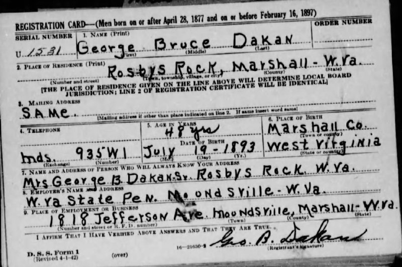 Dale, WV. He was buried on 25 May 1948 in Mt. Rose Cemetery in