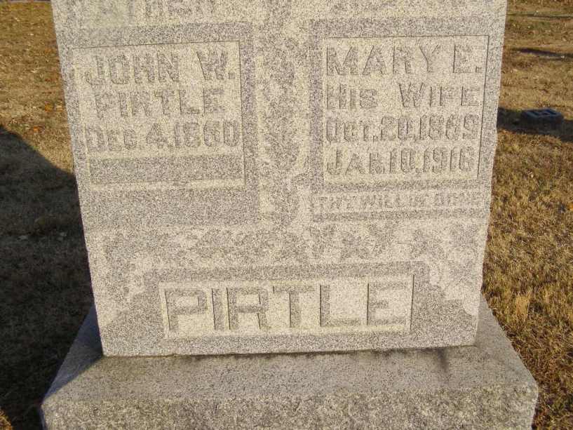 John Wesley PIRTLE was born on 8 Feb 1880 in Union County, IL. He died in 1955. John married Minnie May KEHMUEL, daughter of David A. KEHMUEL and Laura E. CHANDLER, in 1912 in Alexander County, IL. Minnie was born on 26 Jan 1871 in Jonesboro, IL. She died on 9 Jan 1937 in Road District #8, Union County, IL. She was buried on 12 Jun 1937 in Jonesboro, IL. John & Minnie had no children.